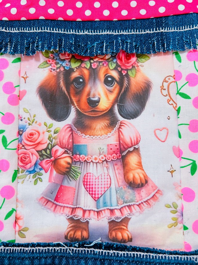 リメイクデニム巾着ポーチ★ミニチュアダックス★ピンク