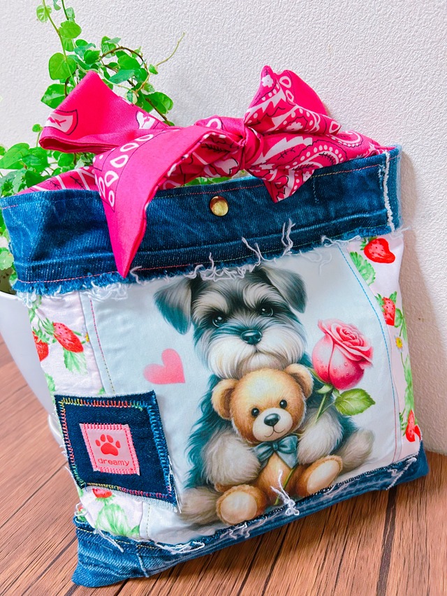 リメイクデニム半円ポーチ★ EarthDayスペシャル★シュナウザー