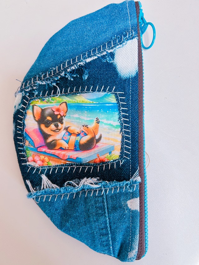リメイクデニム半円ポーチ★ EarthDayスペシャル★チワワ