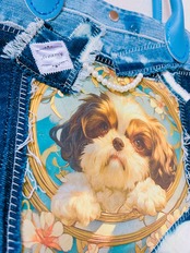 リメイクデニムトートバッグ★オリジナルブリーチ★シーズー★ブルータイプ