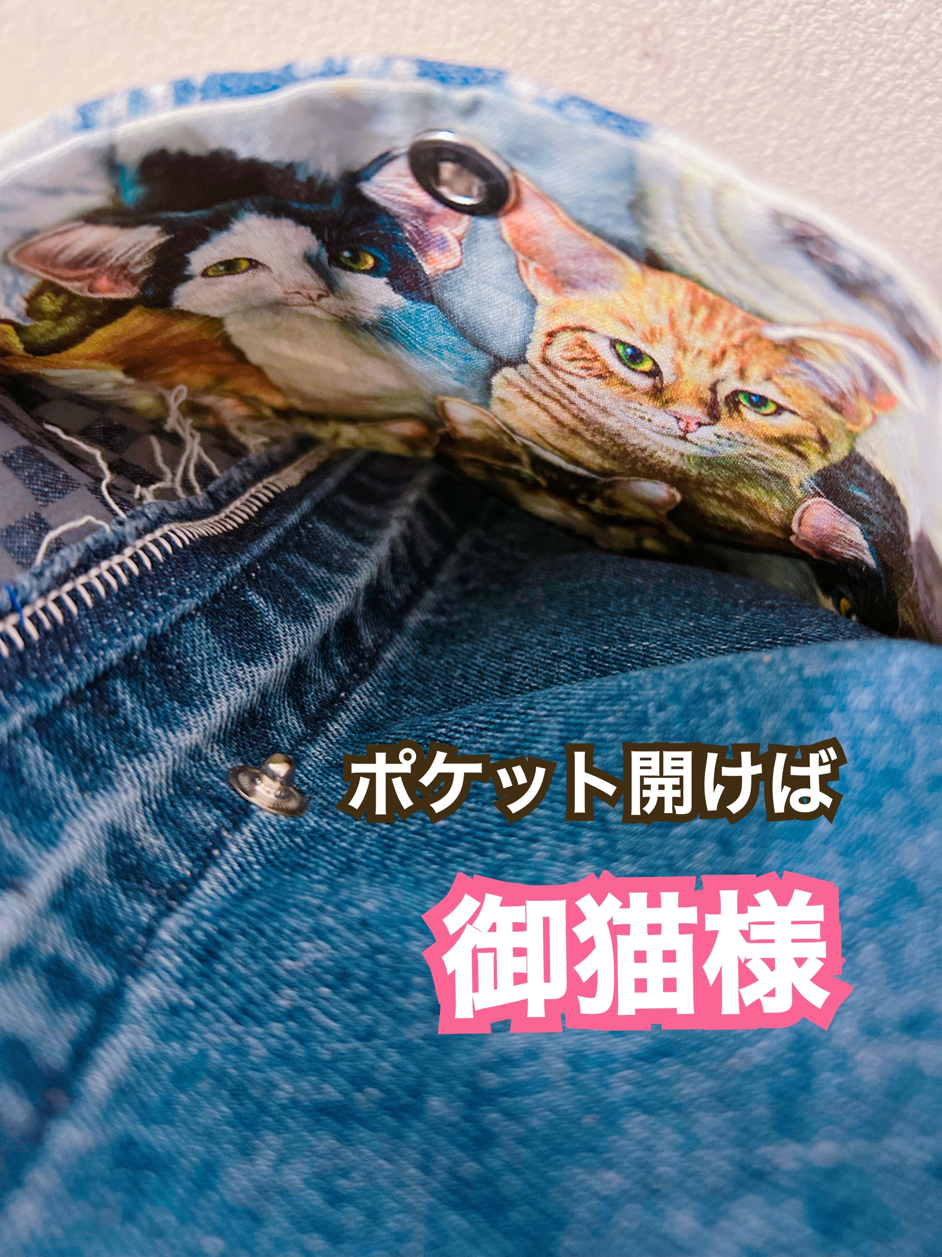 【Nさまご注文品】隠れ猫SPECIAL★リメイクデニムバケツトートバッグBIGサイズ