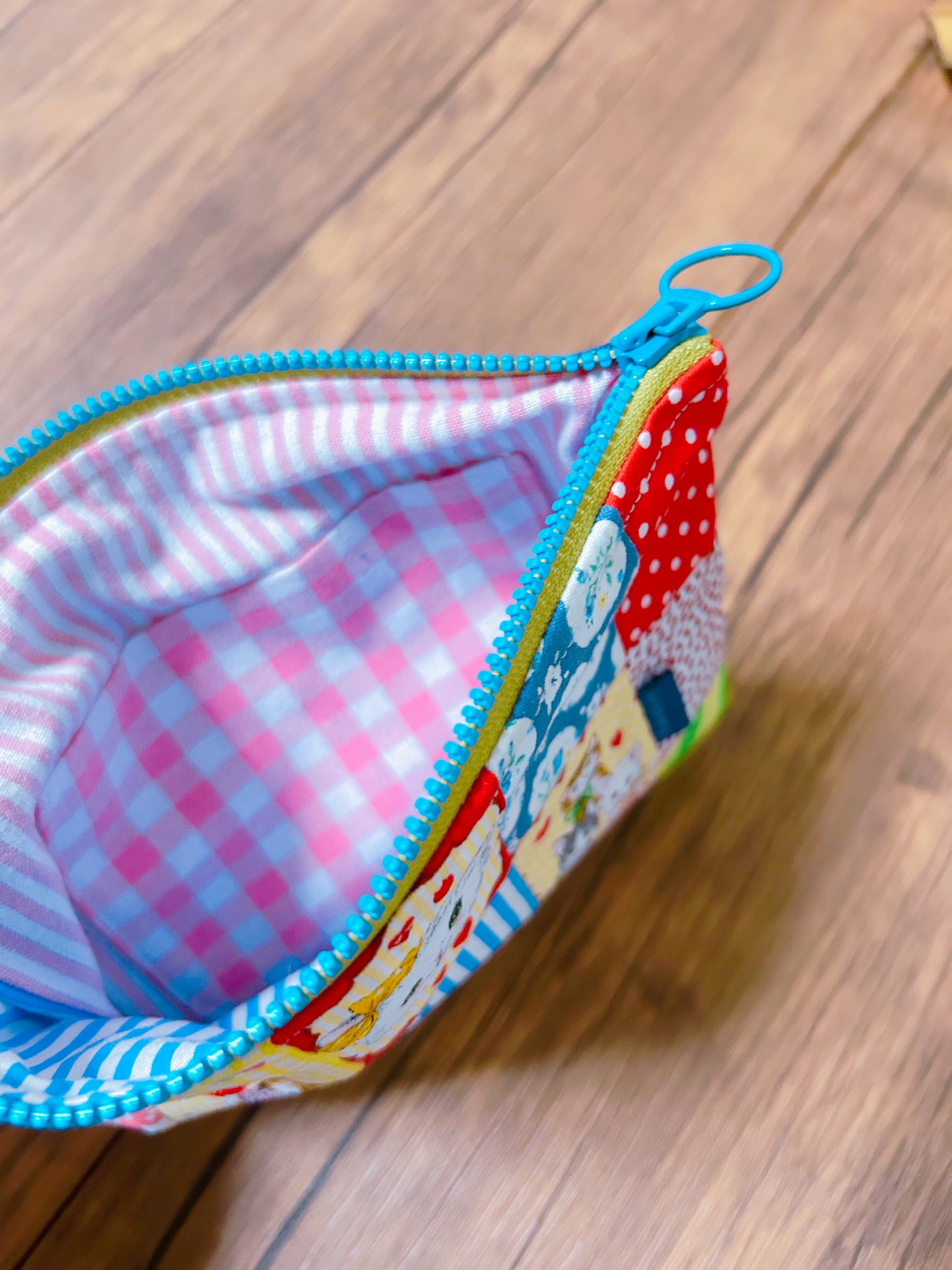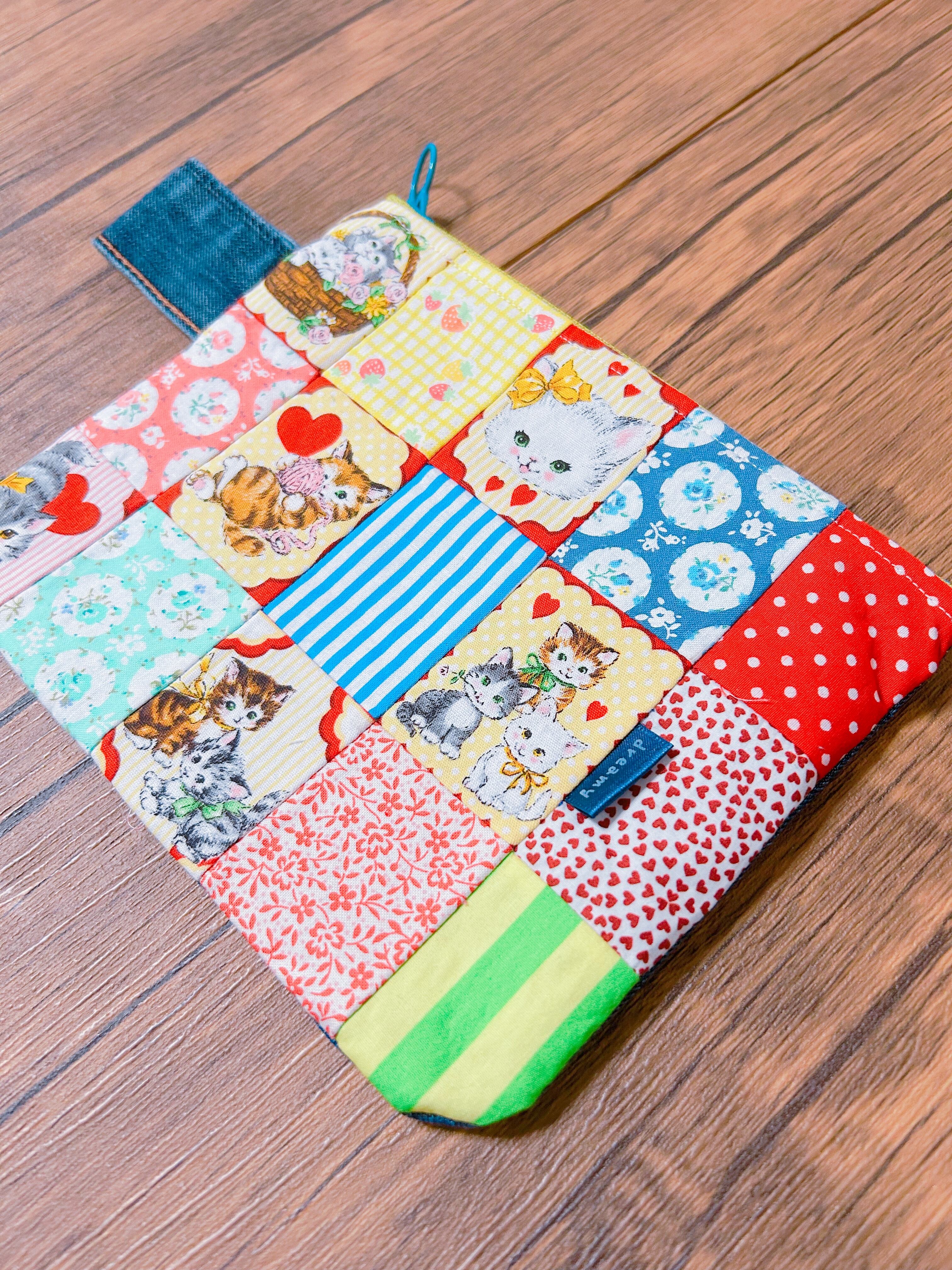 レトロな猫ちゃん生地をカラフルな布で