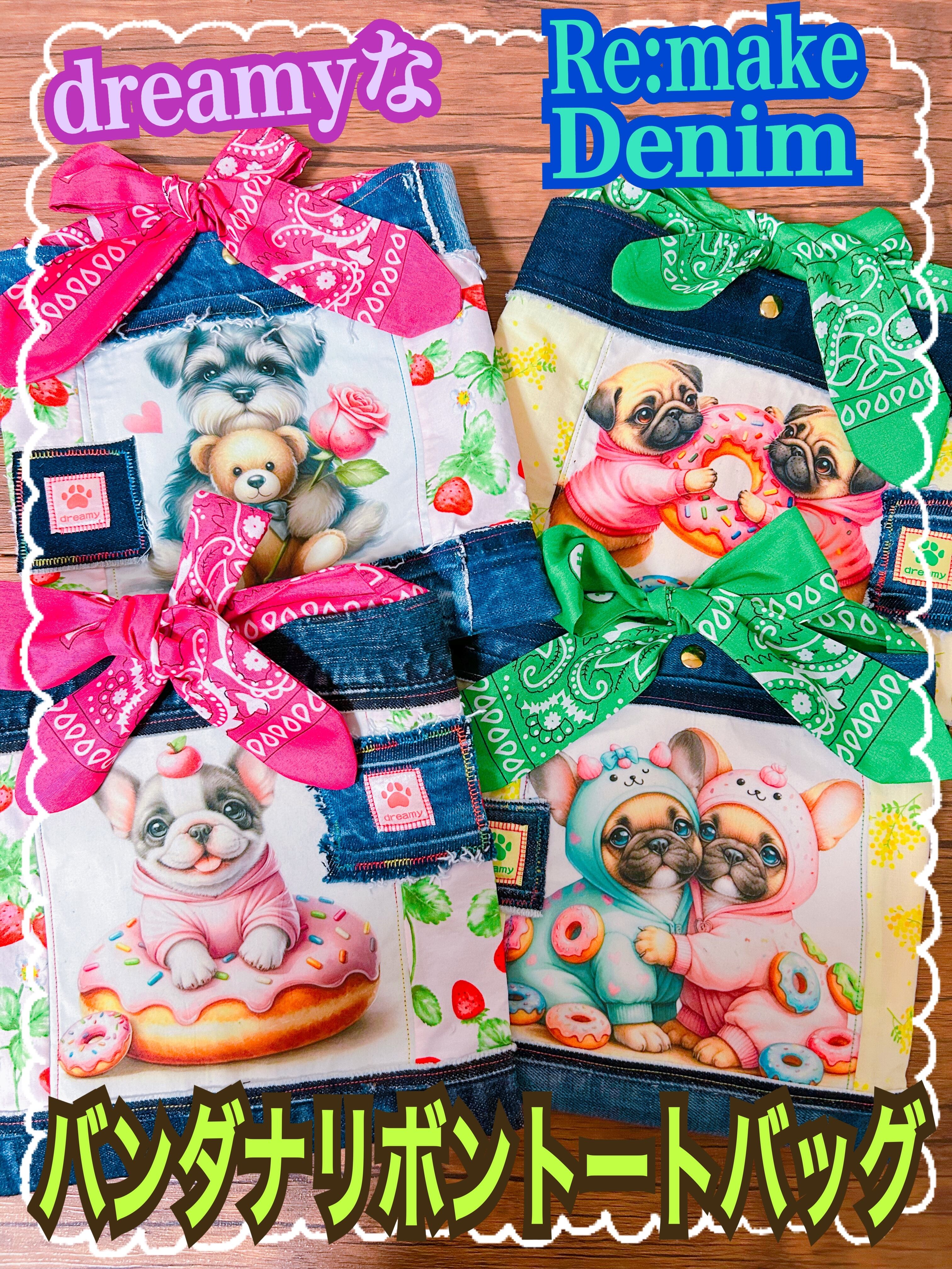 バンダナリボントートバッグ★シュナウザー★ピンク