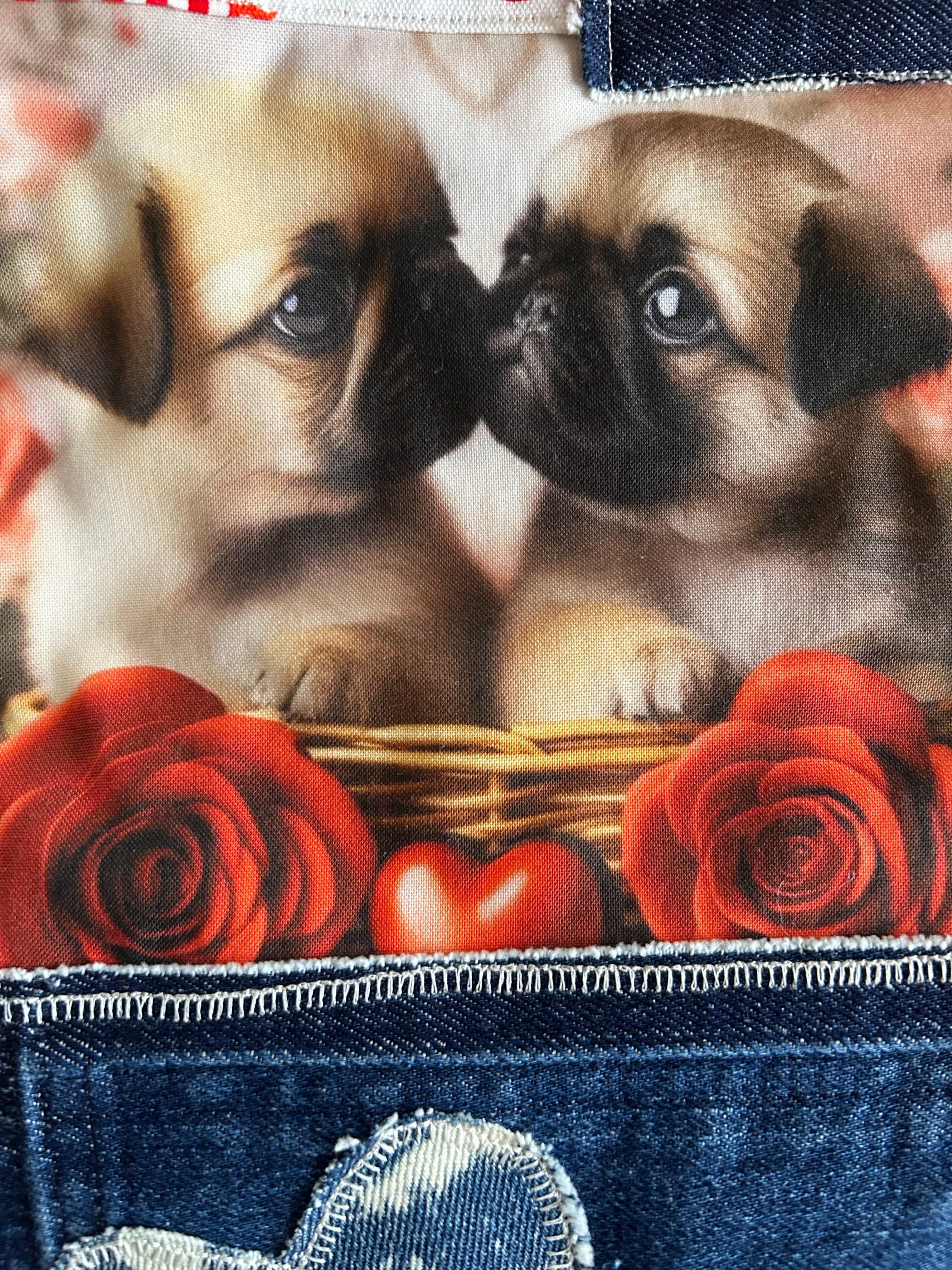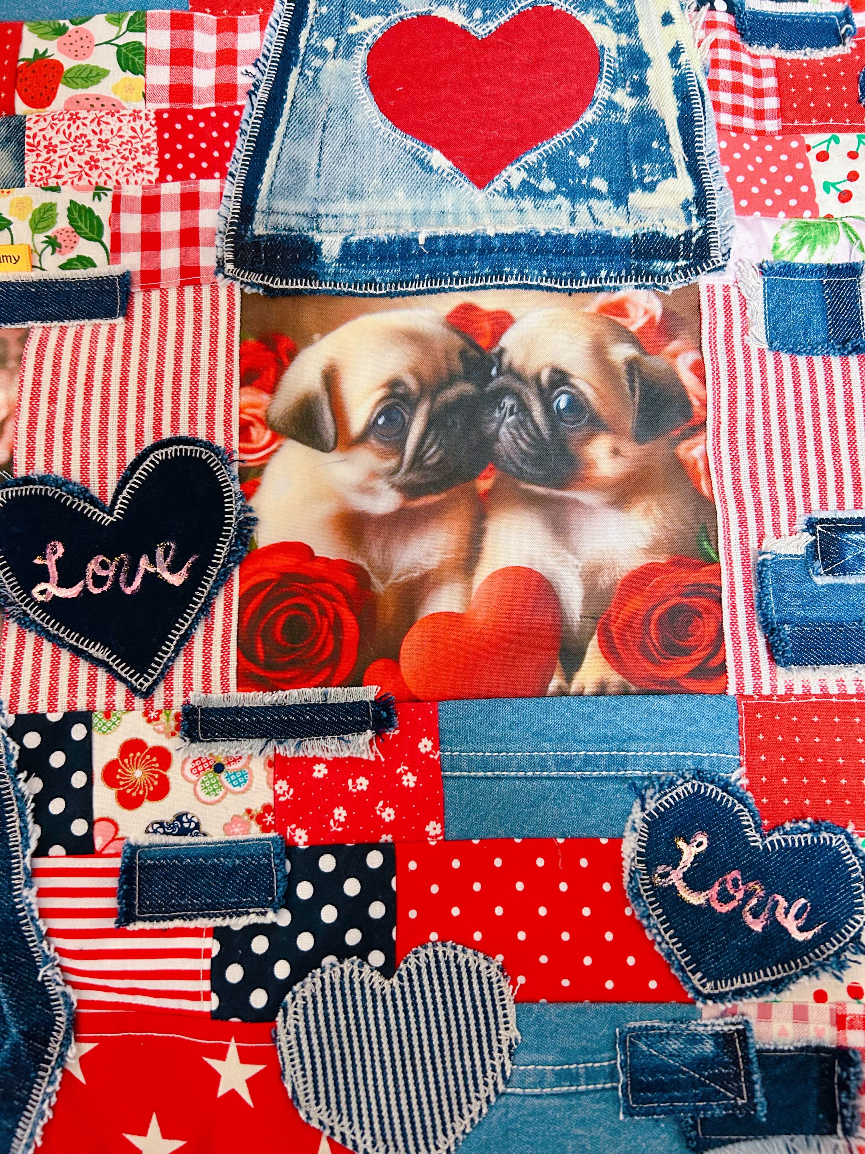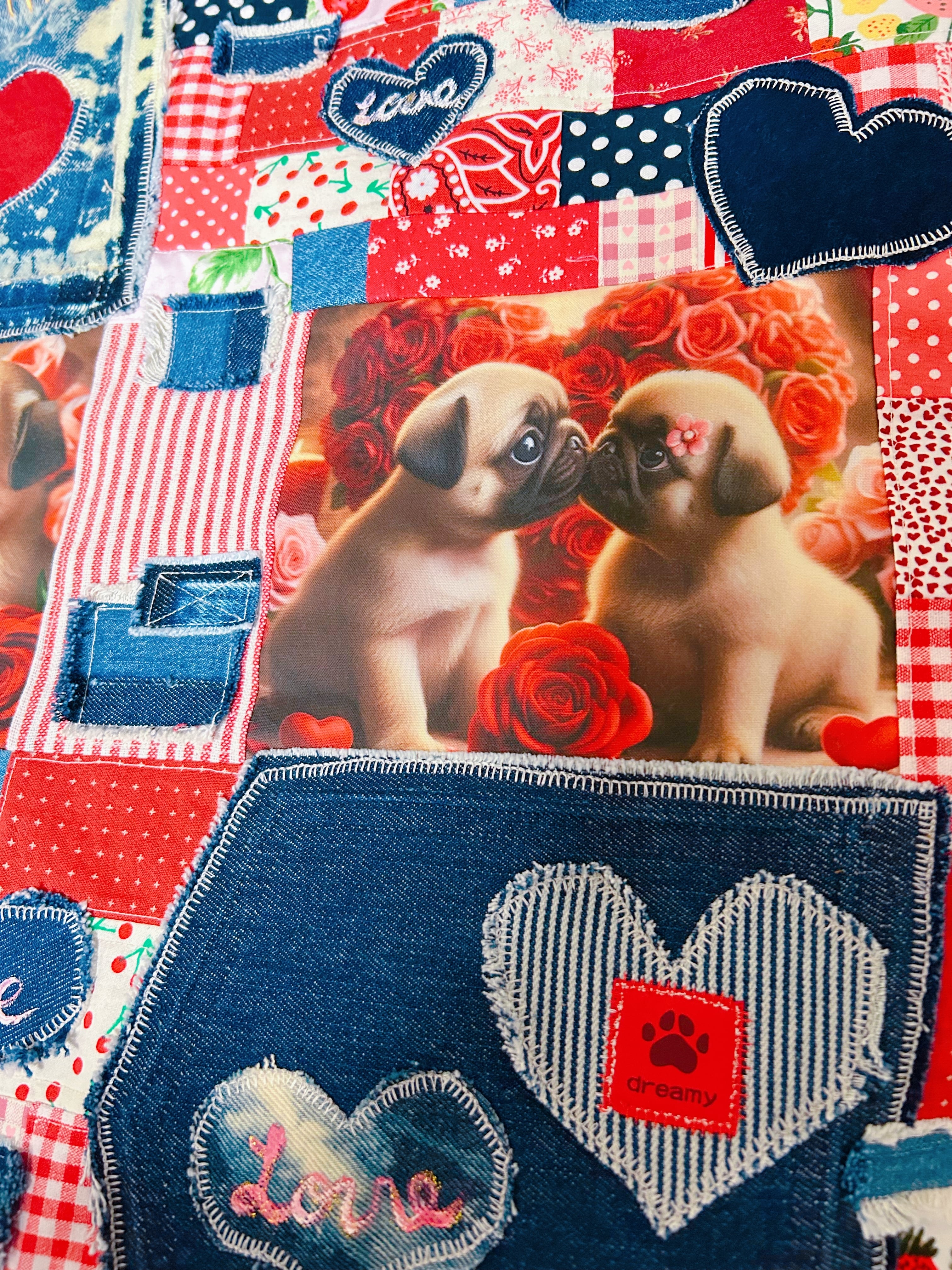バレンタインスペシャル★リメイクデニムマット★パグフォーン