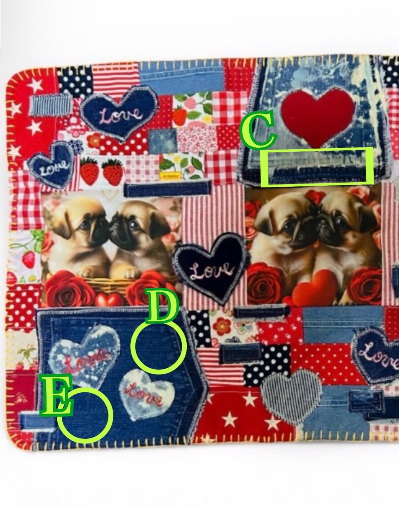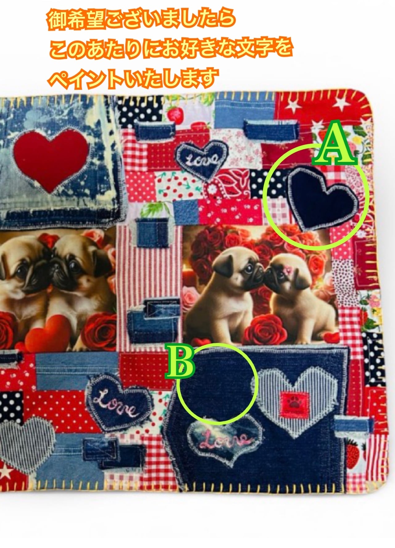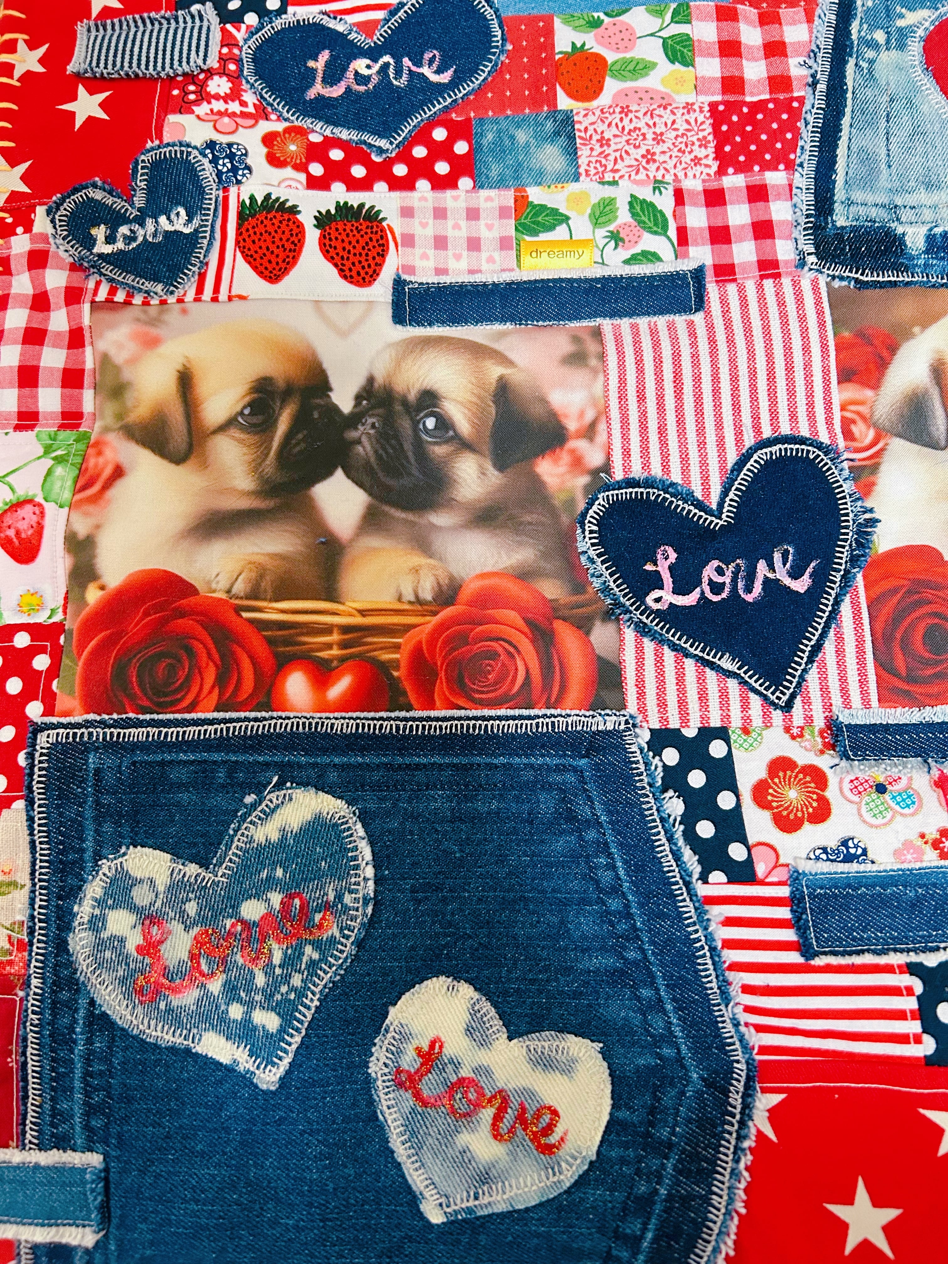 バレンタインスペシャル★リメイクデニムマット★パグフォーン
