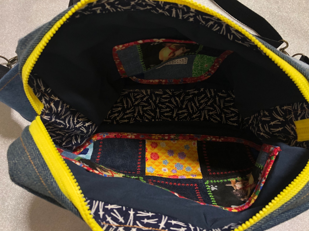 ①表側フレブルと和柄とデニムのキルト