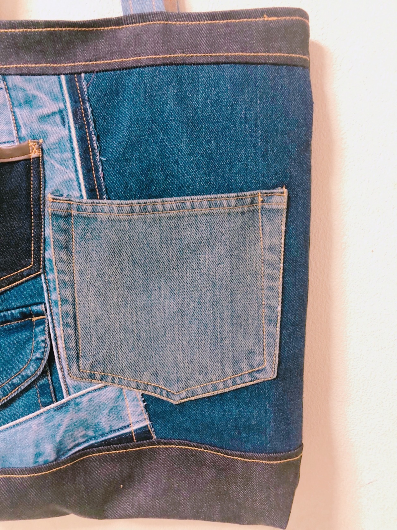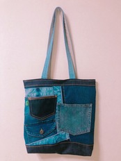 様々な色のデニム解体し、様々な部位を図工のように創作し出来上がったオンリーワンの作品です!