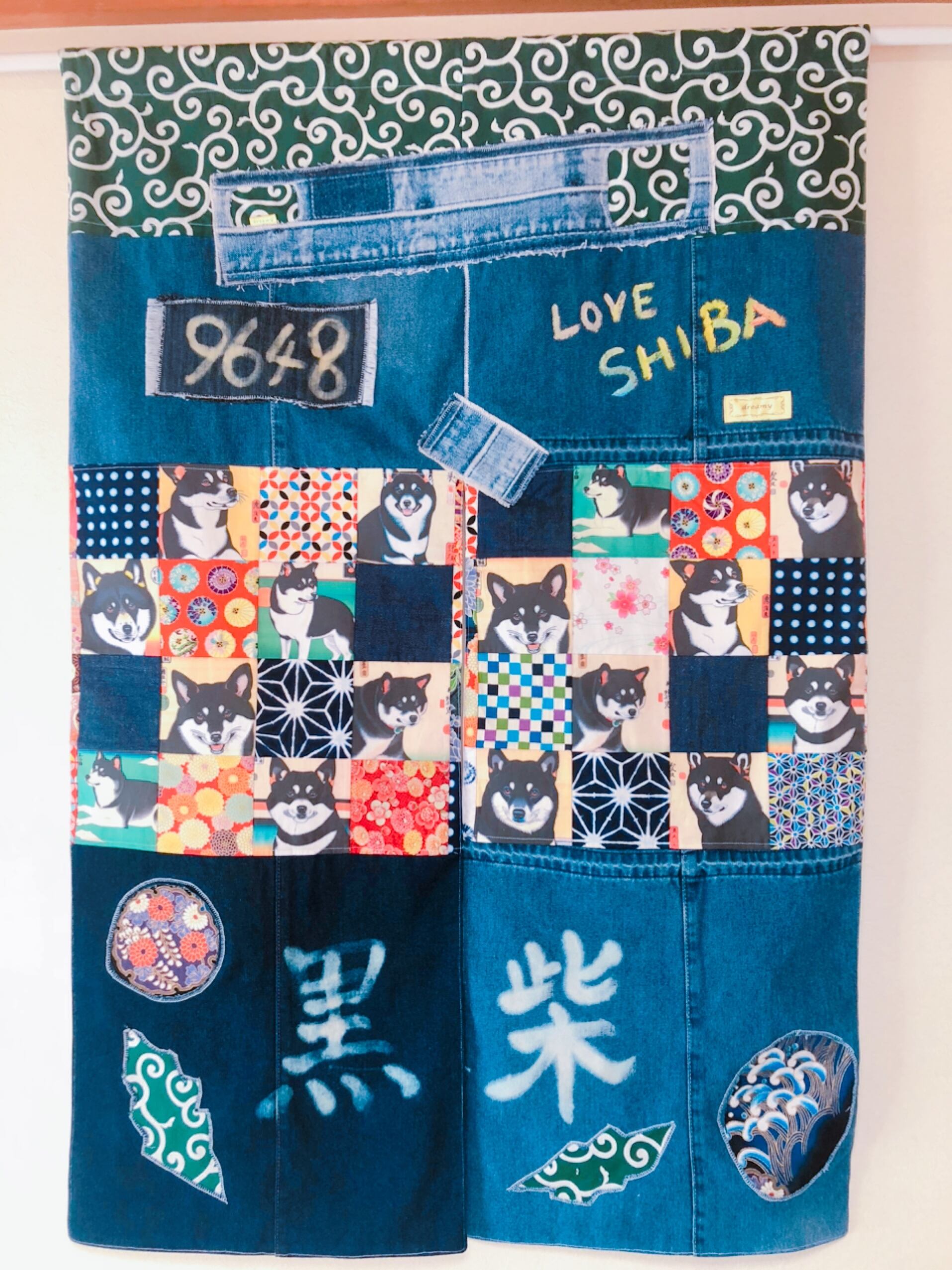 暖簾(のれん)★黒柴★ペイント&ブリーチスベシャル