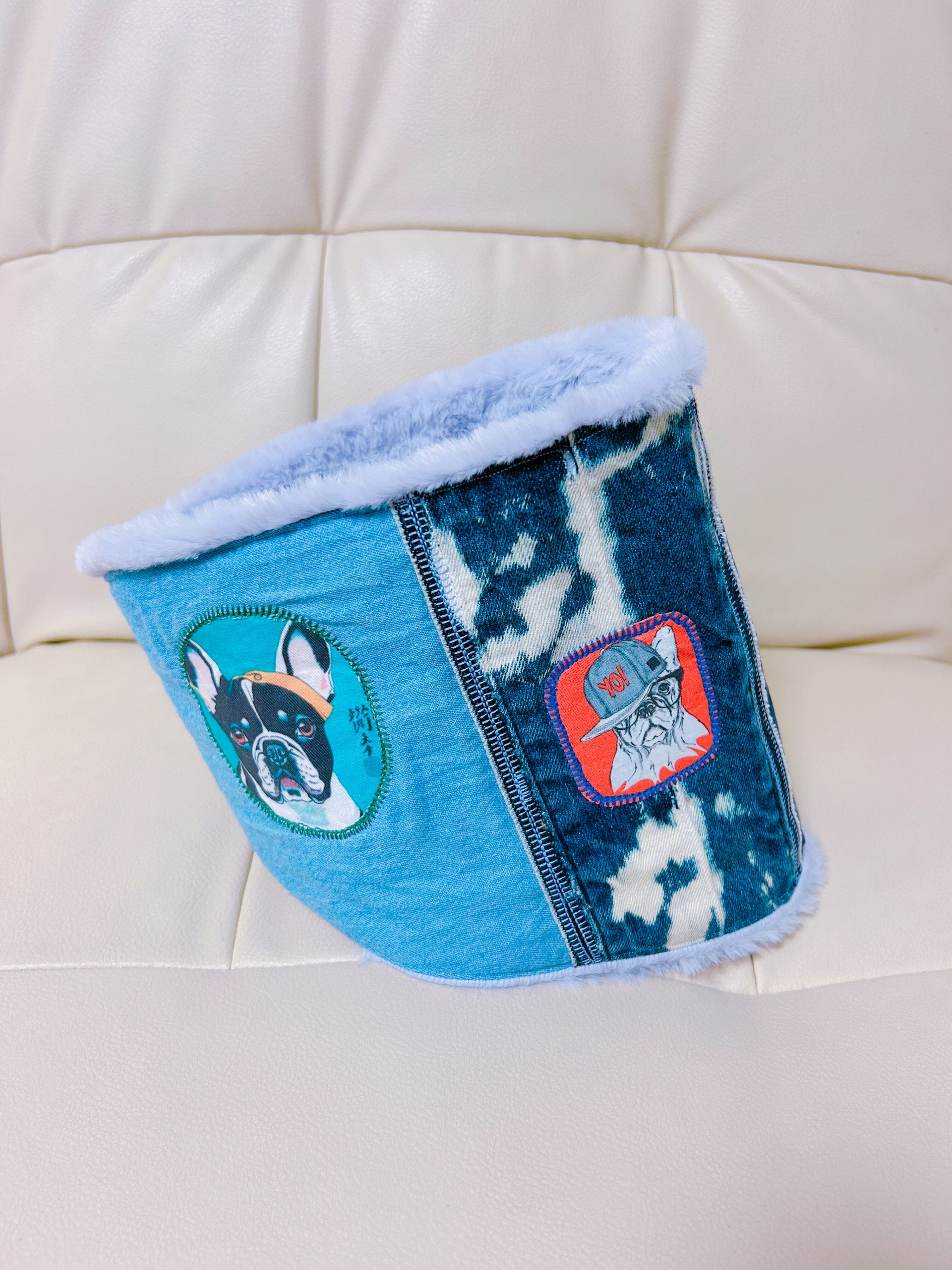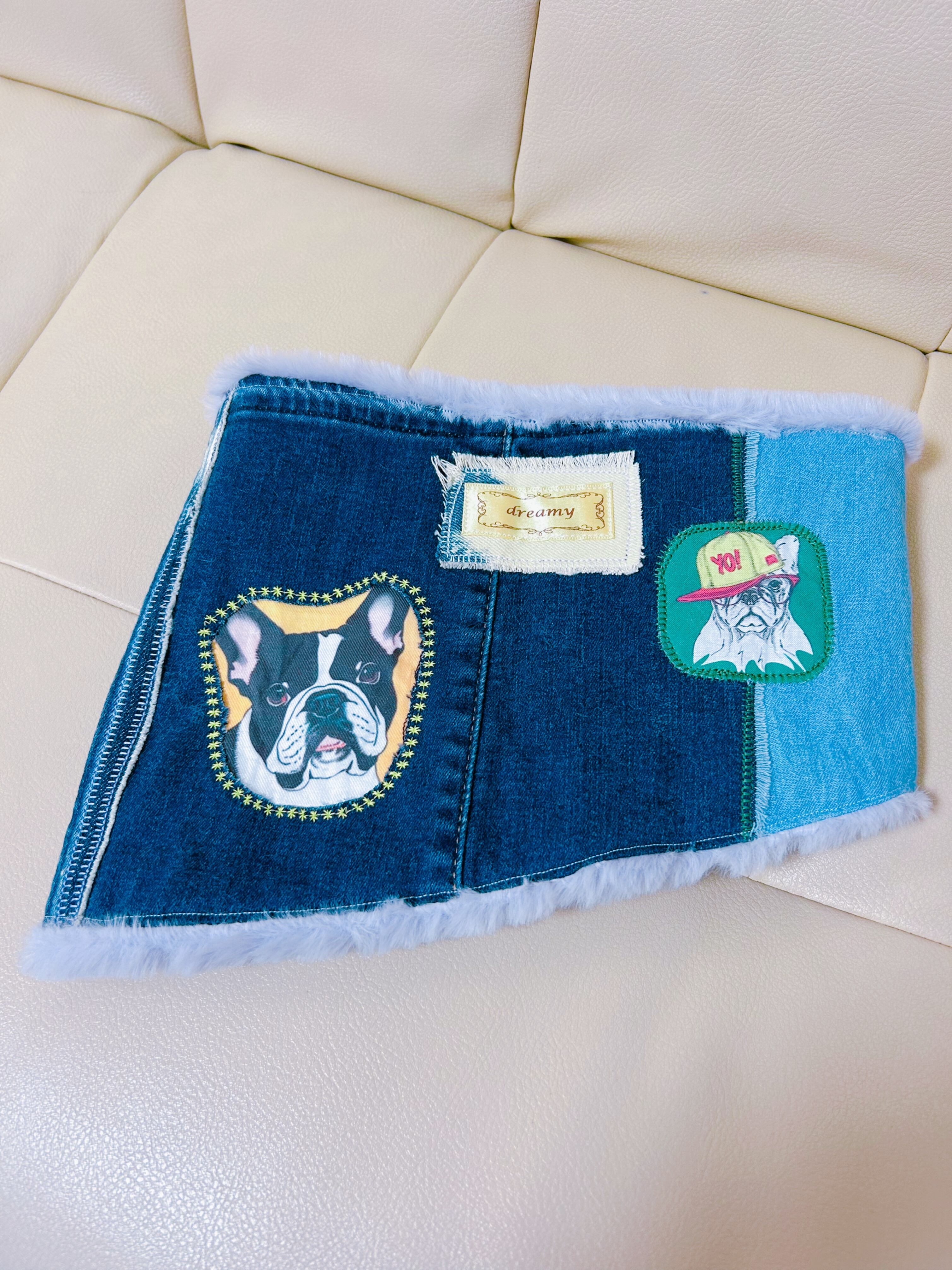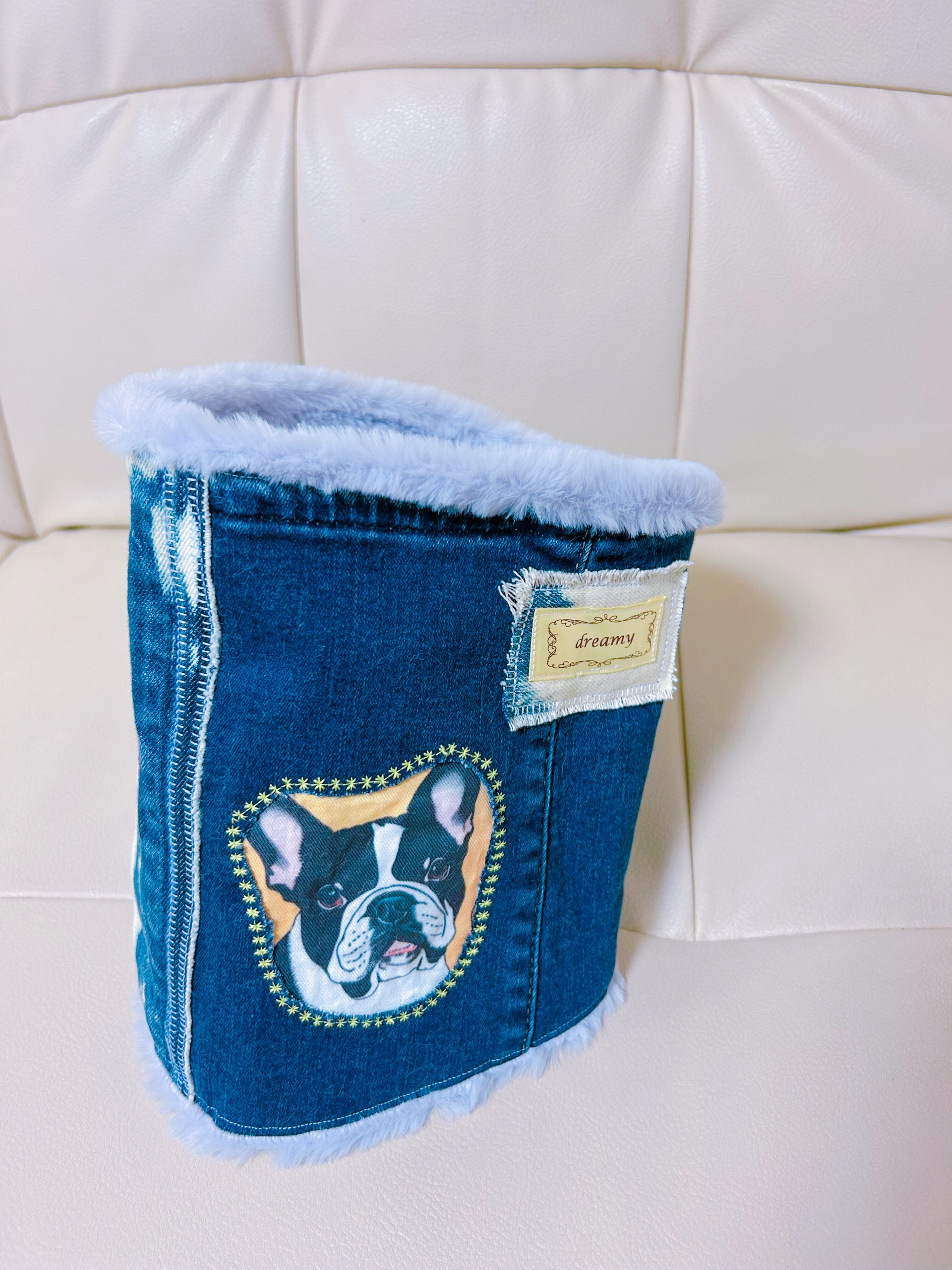 リメイクデニムネックウォーマー★フレンチブルドッグ★むらさきファー