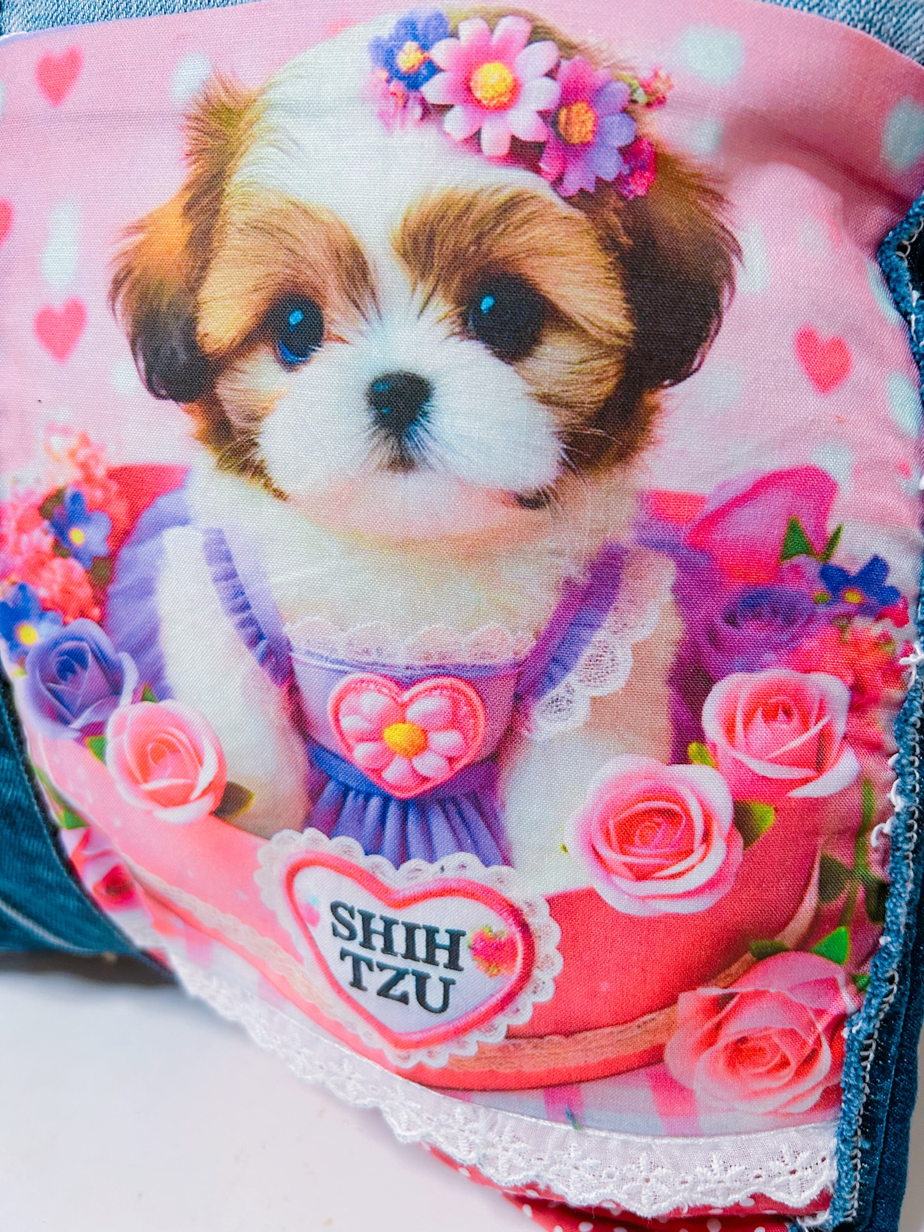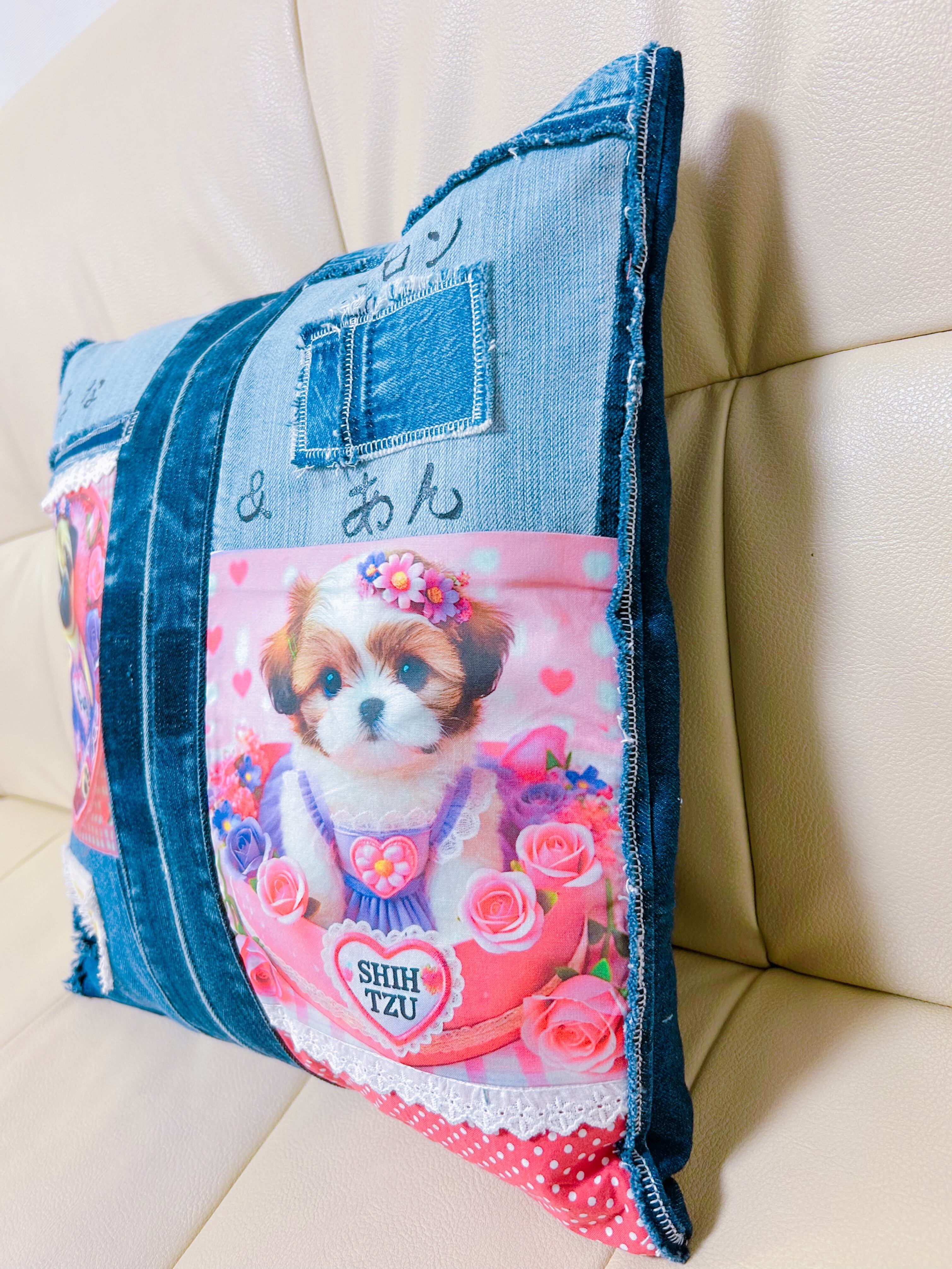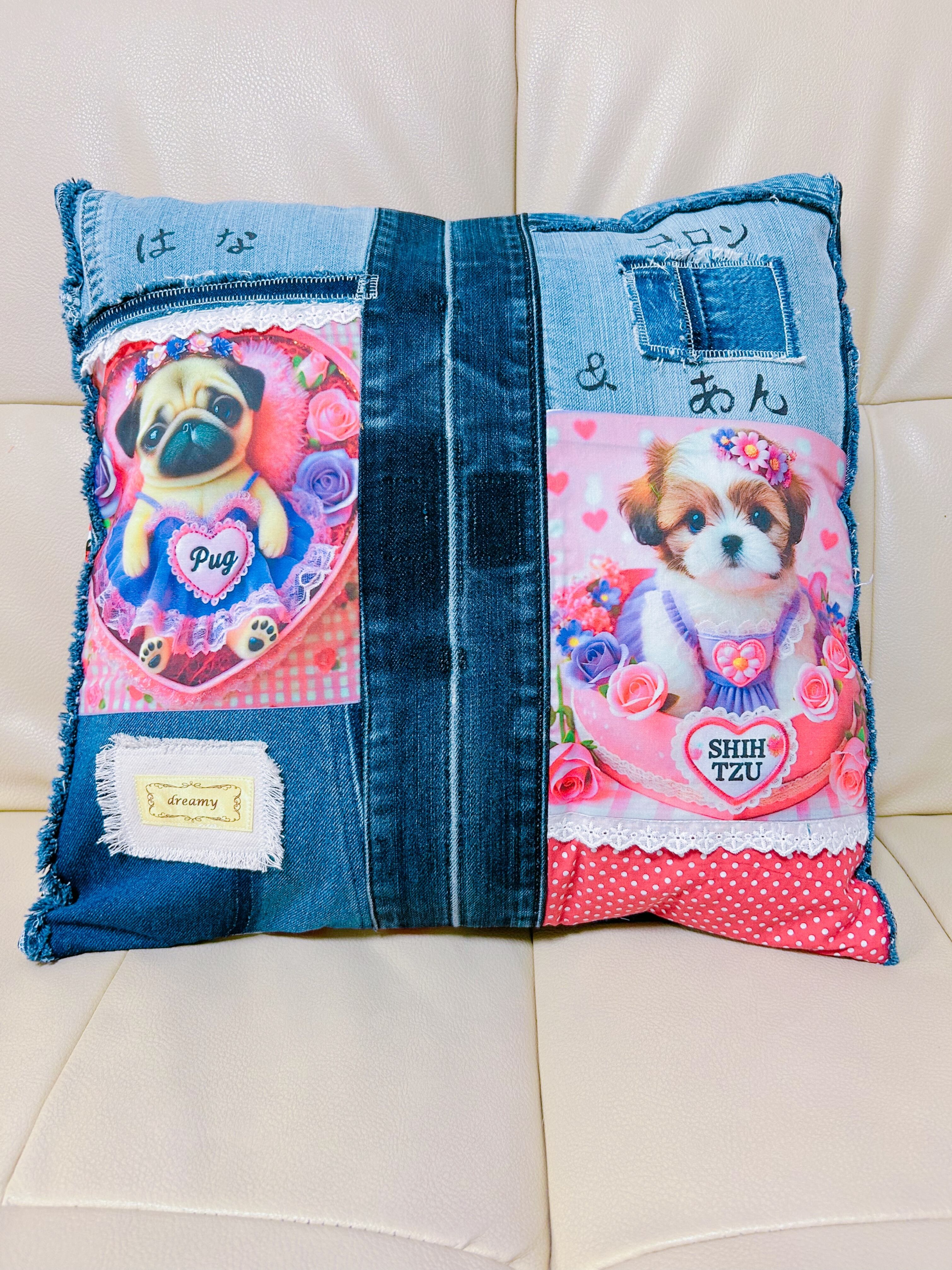【御H様ママご注文品】リメイクデニムクッションカバー★パグ&シーズー★ラブリー仕様