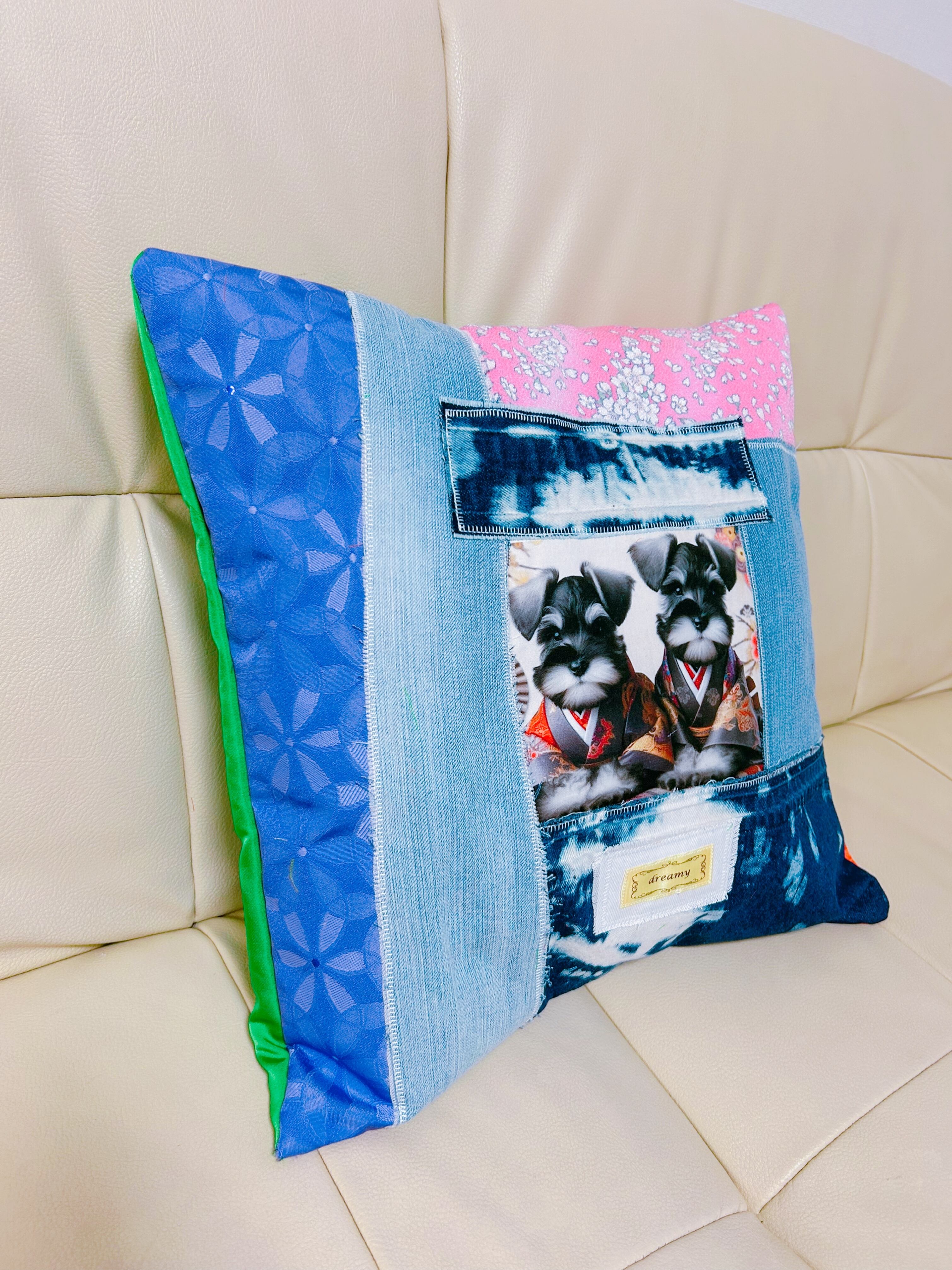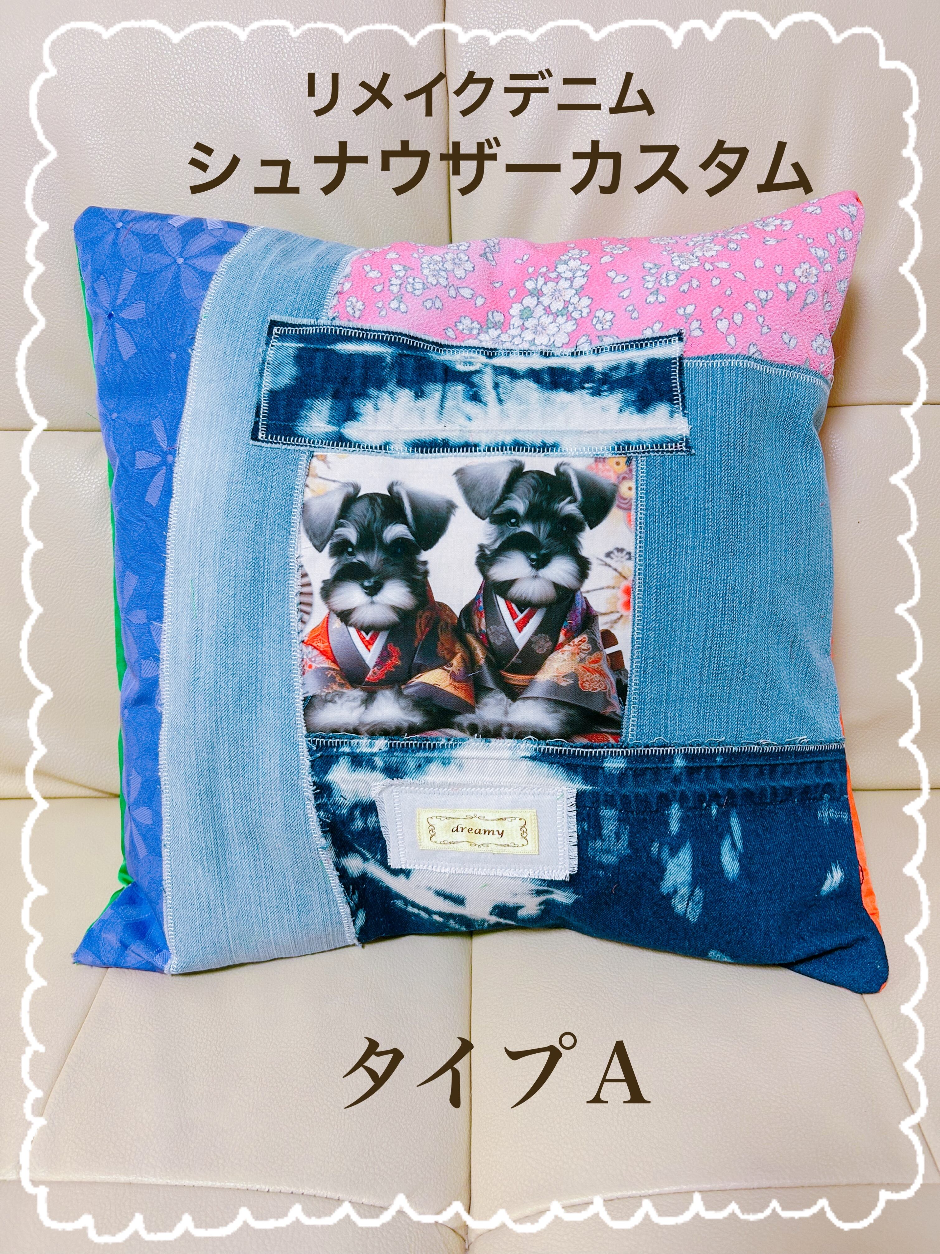 リメイクデニムクッションカバー★シュナウザーカスタム★タイプA