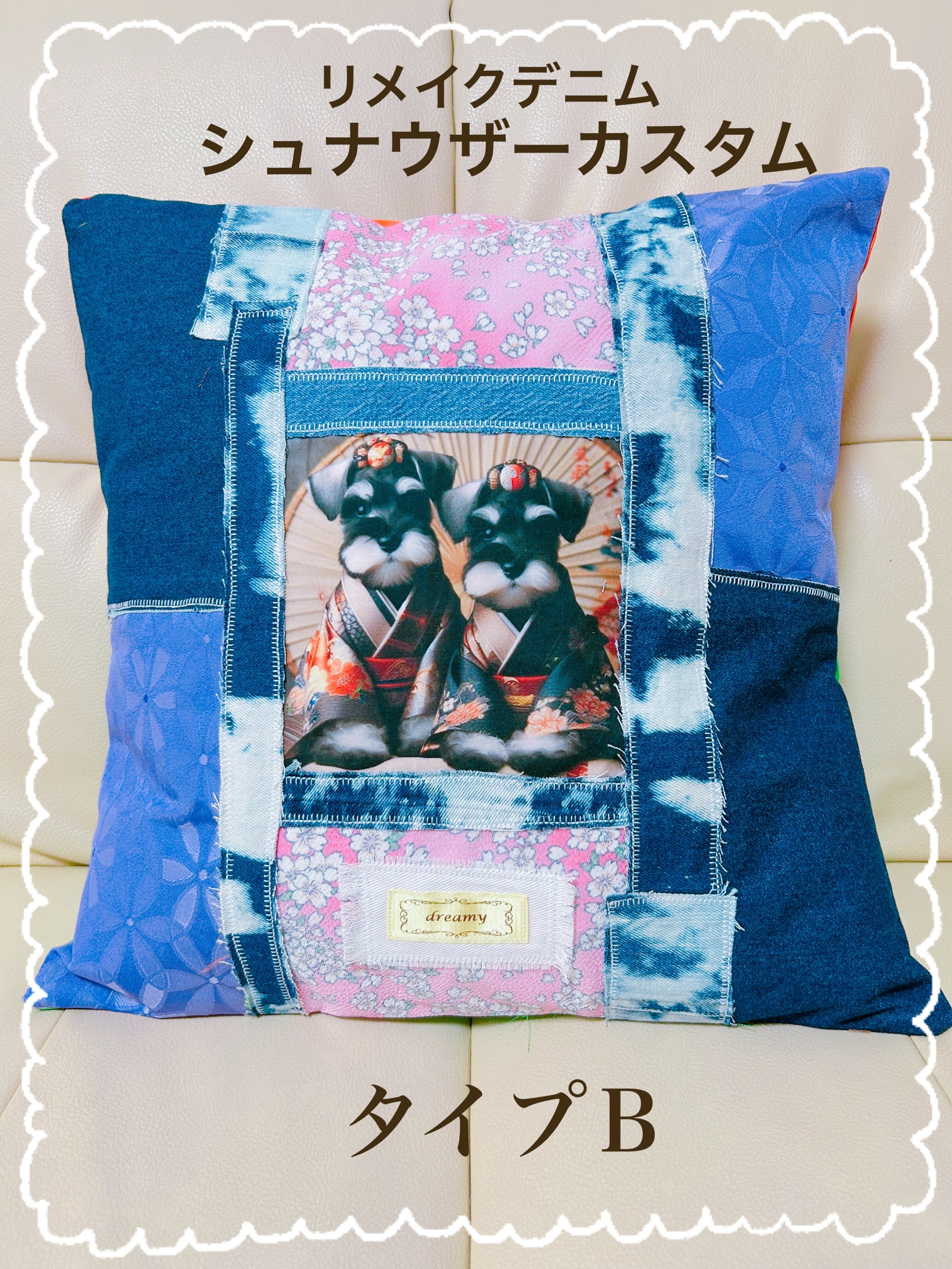 リメイクデニムクッションカバー★シュナウザーカスタム★タイプB