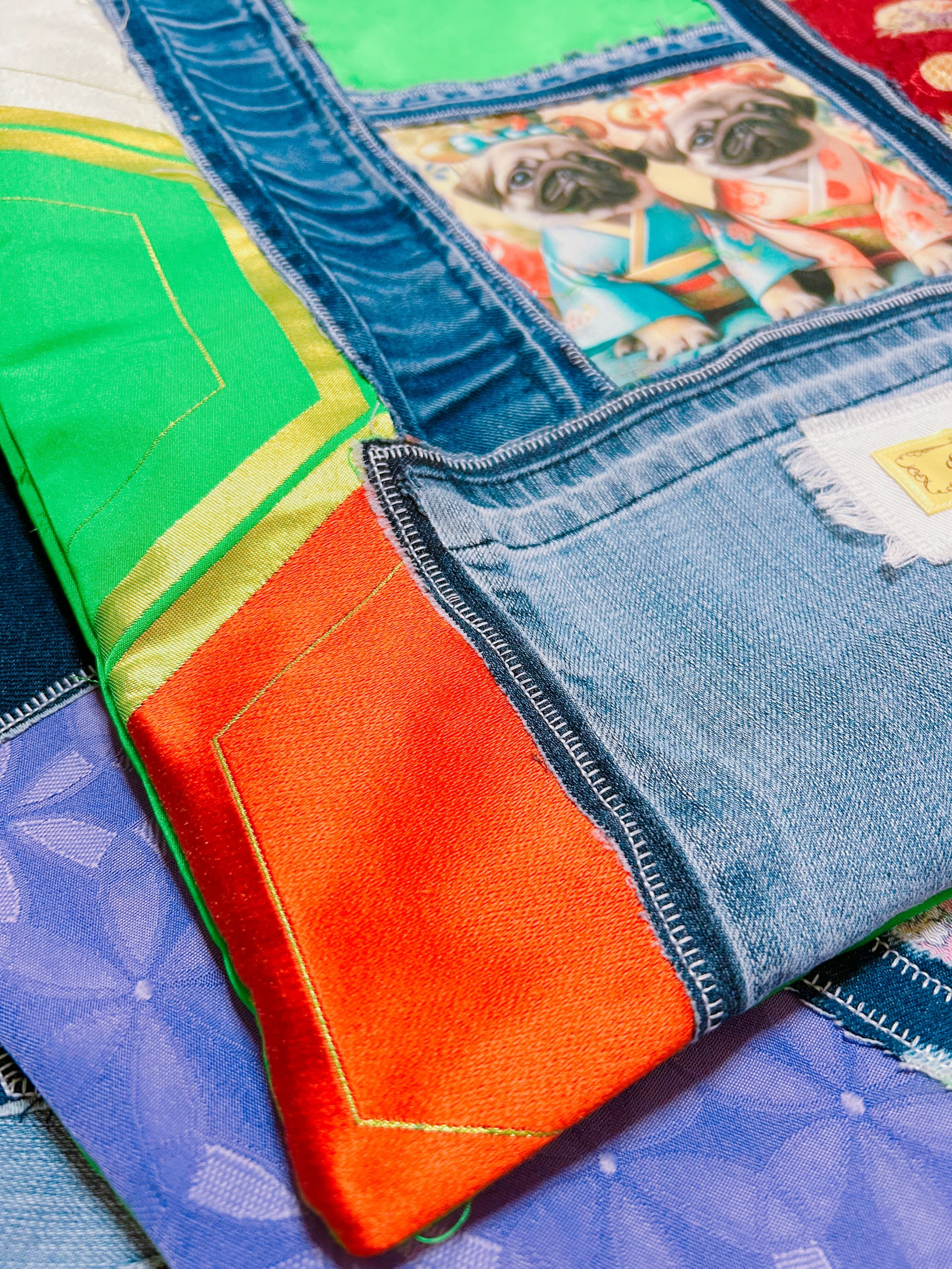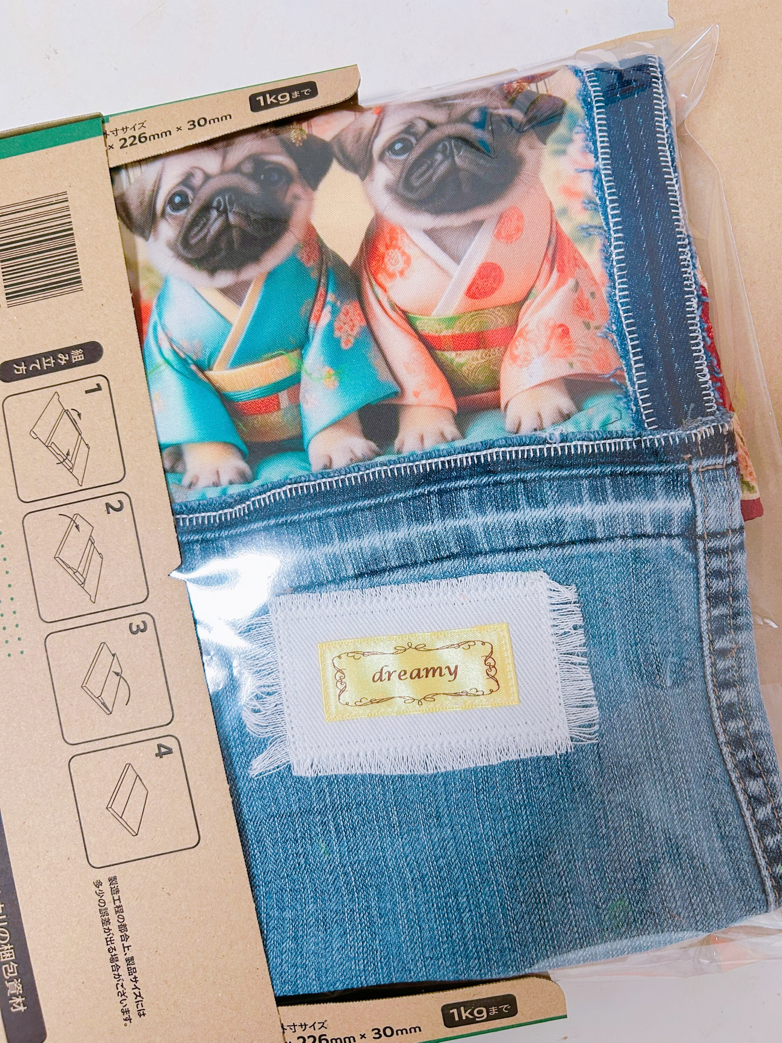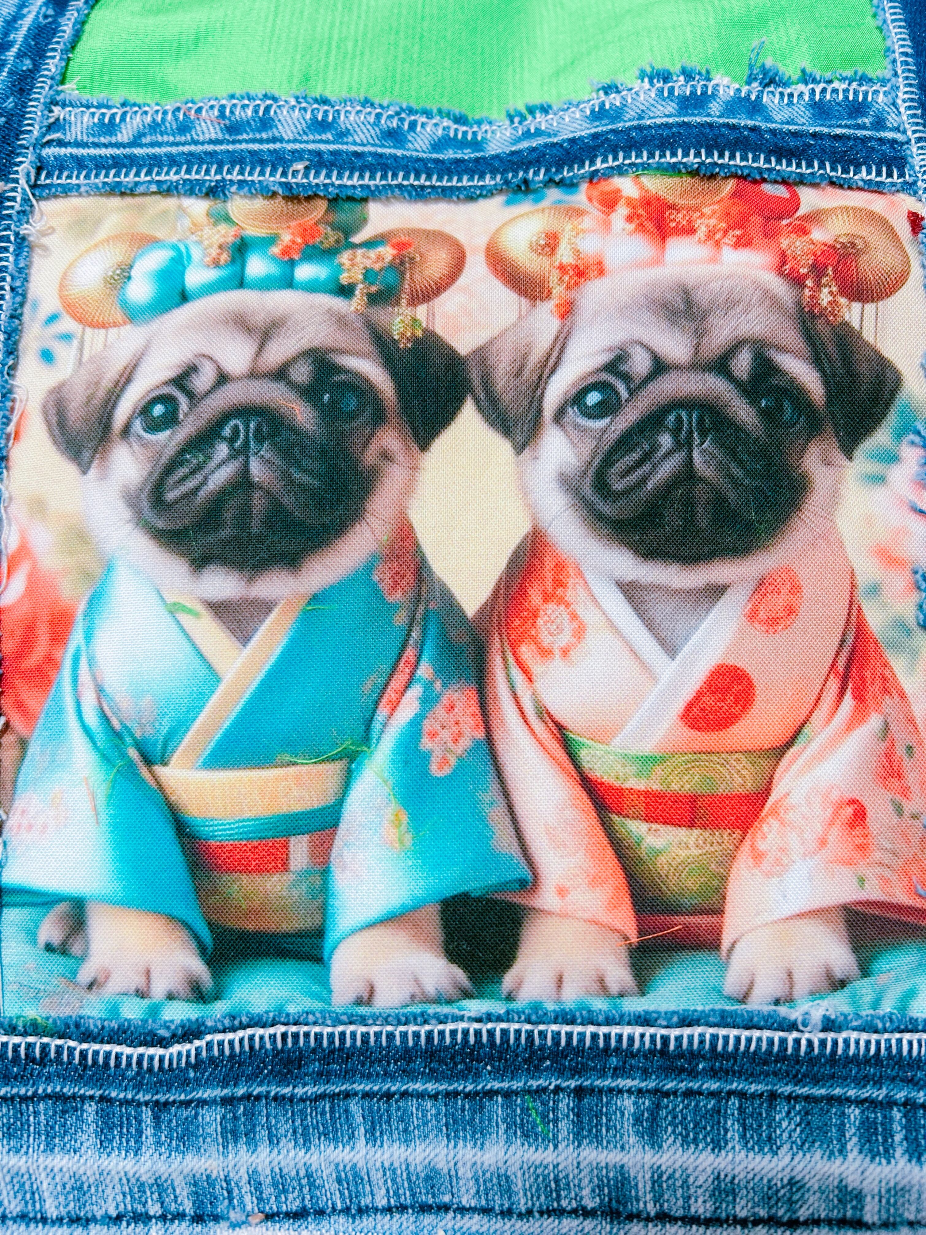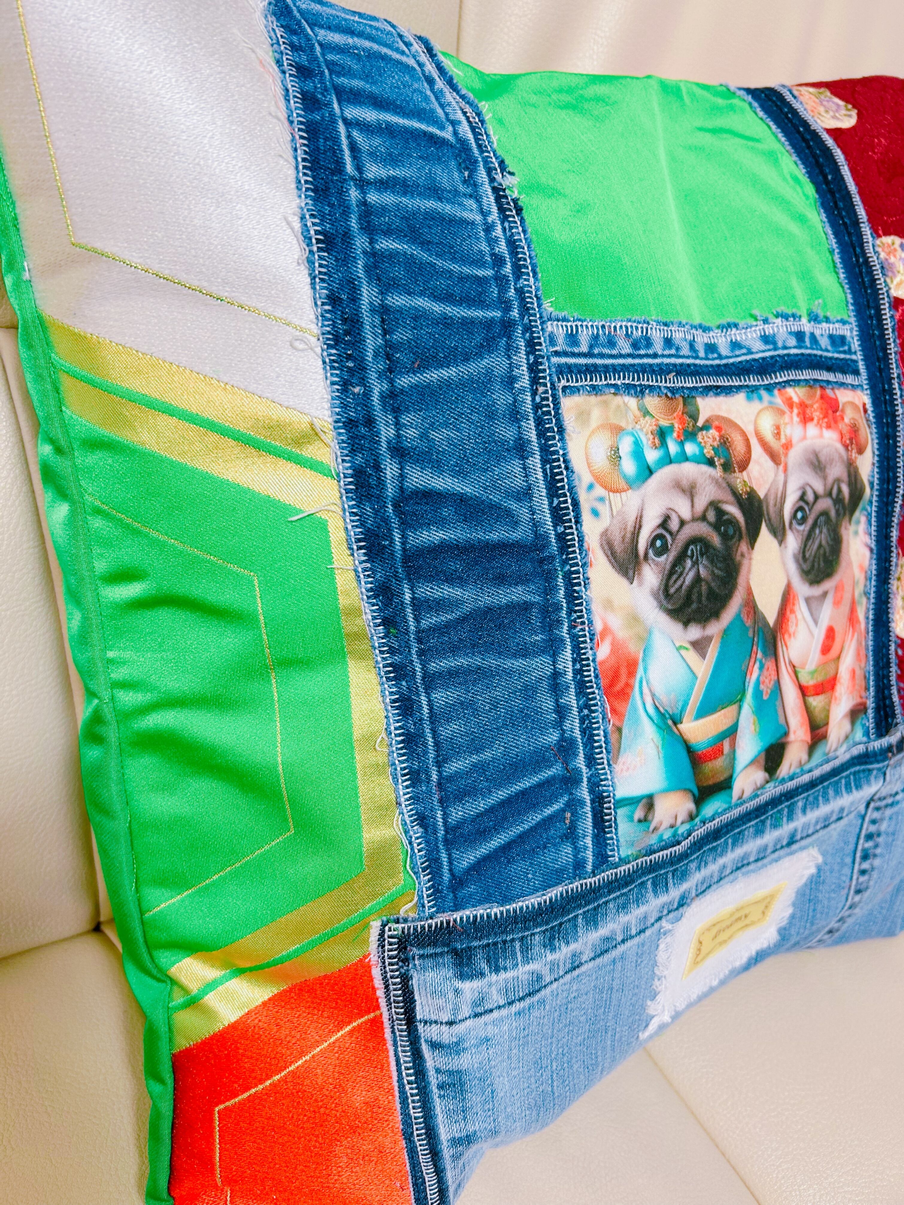 リメイクデニムクッションカバー★パグフォーンカスタム★タイプA
