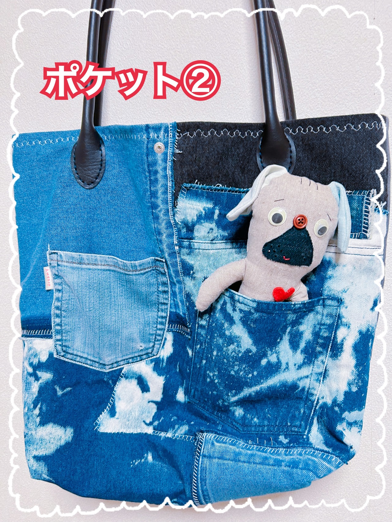 リメイクデニムBIGトートバッグ★パグフォーンSPECIAL