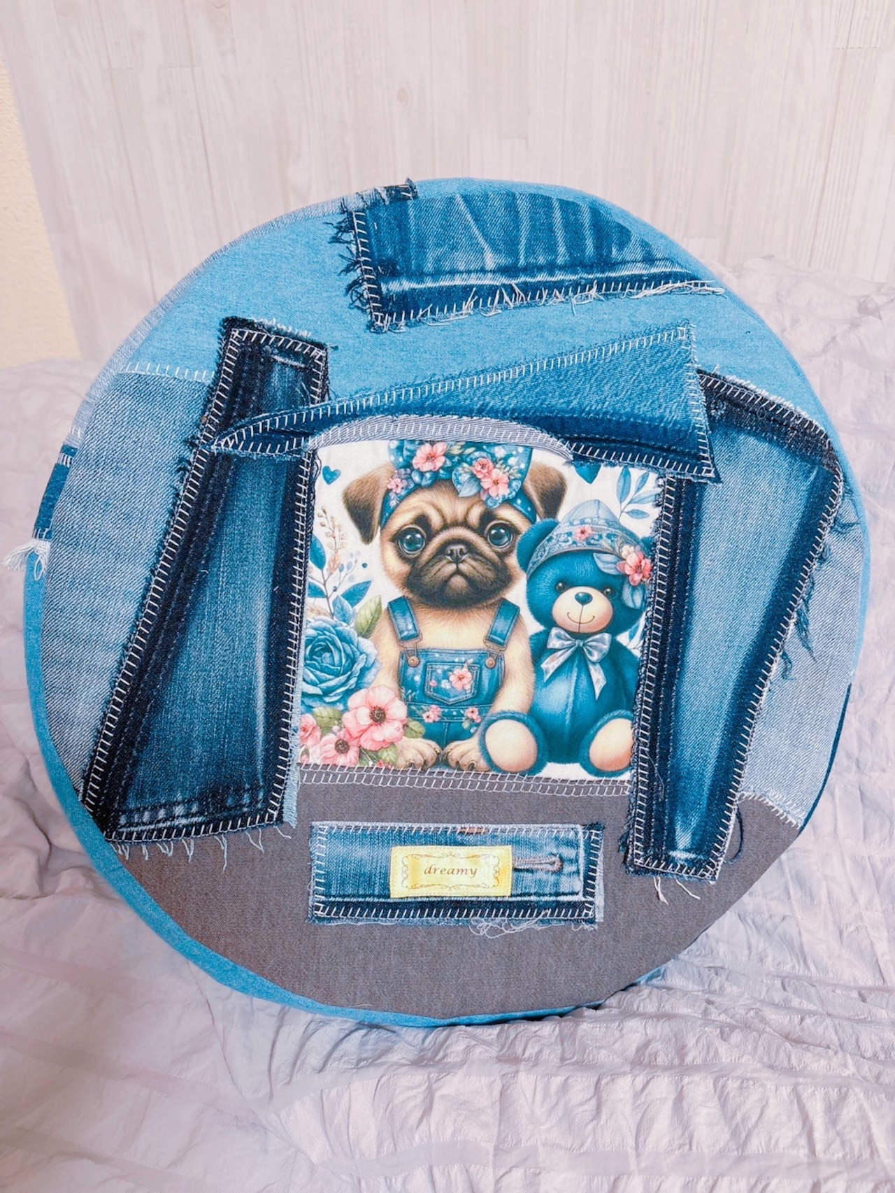 リメイクデニムクッション★パグ★フォーン
