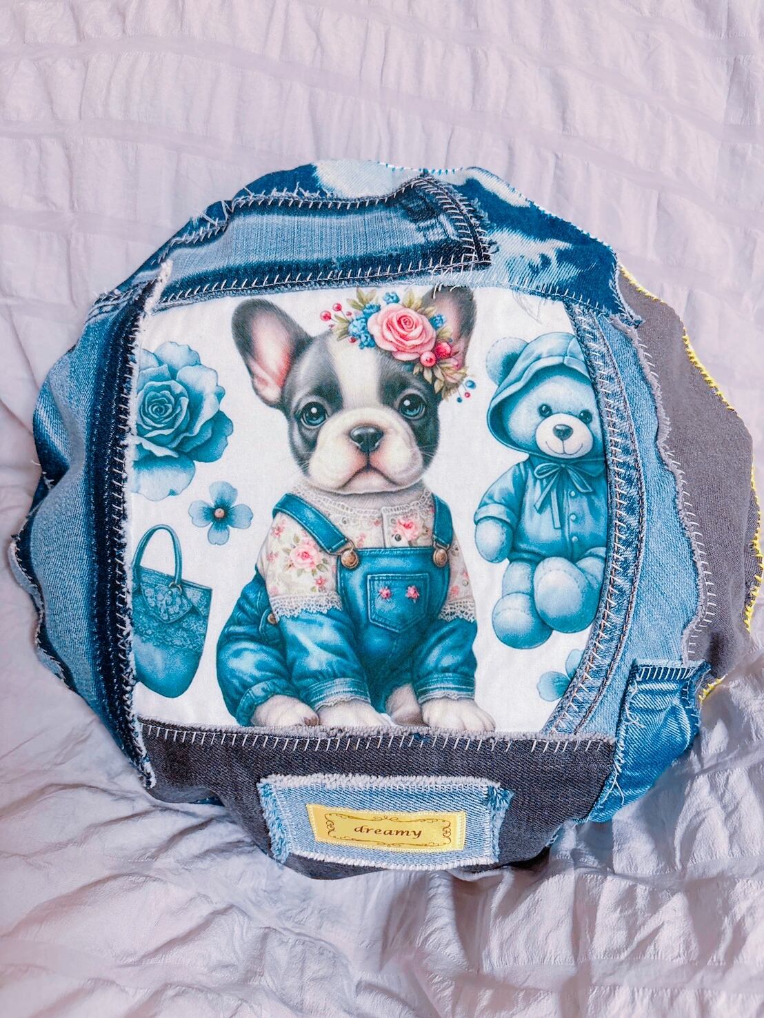 リメイクデニムクッション★フレンチブルドッグ★パイド