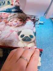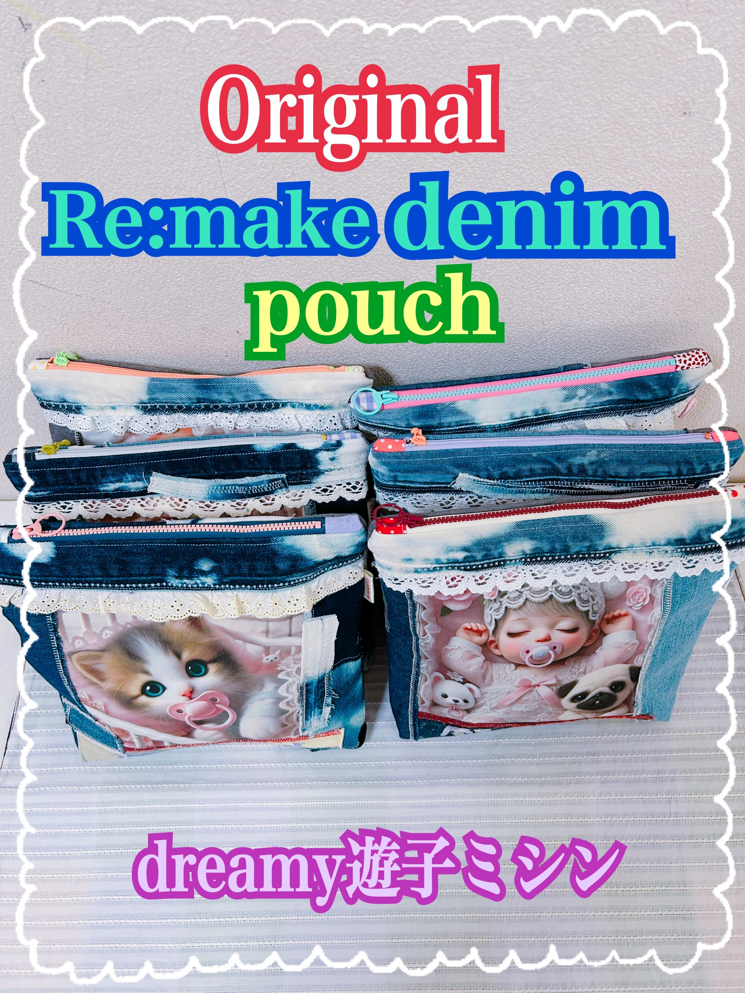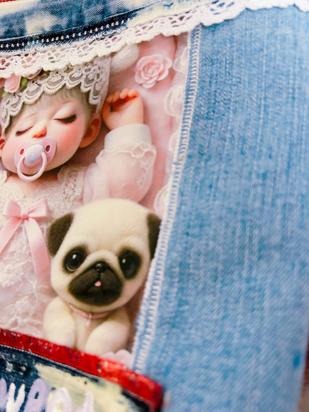 リメイクデニムBIGポーチ★パグフォーン★ペイントカスタムB